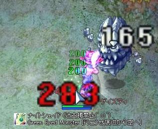 トラさんと結託(?)してイチゴさんの素プリを名無しへ連行。私とイチゴさんでPTを組み、トラさんはハイプリでPT外支援。…なんか毎回このパターンで私丸儲けなんですが(;´Д`)ゞ そのうち2ndプリ連行しちゃるから待っとれよっ!ヽ(`Д´)ノ で、1hほど狩ってイチゴさん20%ほど増えた模様。私もWIZのBase・Jobともに上がって96/65になりました(ノ∀`)アリガタヤー
