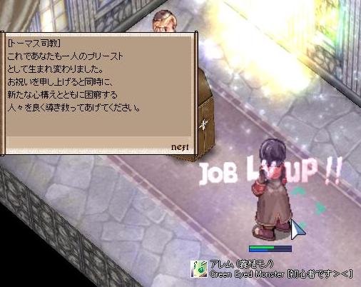 メンテも終わって夕方に2ndプリ用のアコ作成。TU狩りは面白くないのでMEで育てます(・ω・) スパノビが泣く泣くお亡くなりに(´;ω;`) メダル30枚くらい持ってたりしたんですけどね…アコで使えたらよかったのに。