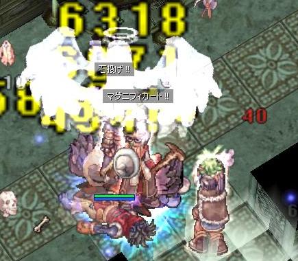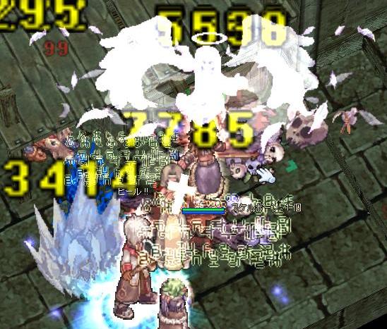 21時から人を集めてETへ。今日はログインしてる人数が少なく、教授さえいなかったりするやや苦しい面子。たぬきの猫さんまで駆り出してなんとか出発。雷鳥を2PCで連れて行ったので歩き演奏は任せろー( ゚ω゚ )バリバリーが効いたかぽちさんが二度にわたる鯖缶(ノ∀`) 物理火力はとらさんのArVのみという苦しい戦いになりましたが60Fまでは到達。出たレアはHRかな。あれ・・・ドロップ1.5倍だよね・・・。というわけで今回のETは惨敗_| ̄|○||| メンバー接続が少ないのを忘れて月曜に行ったのが間違いだったみたいです(ノ-`)