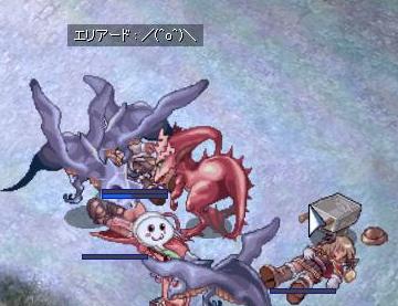 Kさんが社員旅行(だっけ?)で不在のため名無しで前衛できる人がおらず、フクさんが元Reginの鳩さんの花火Gにヘルプ。そしたら9人もの人数が集まり名無し3へ行くことに。♀ハイプリ4人とかありえん(笑)。前衛がさくら嬢のBSだったけど不死盾を借りてるそうで硬い硬い。てか花火GやっぱみんなTUEEw 死んだの全部うちのGの人だなぁ(ノ∀`) それでもWIZ2人+ブラギの高火力でガンガン狩れたので美味しかったです(*´ω`*)
