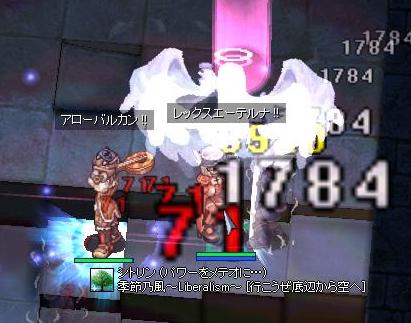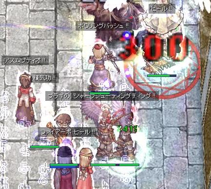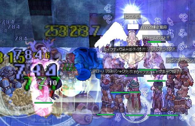 まだ終わらない。最後にもう一狩り行くことになり、「場所どこでもいいよー」と言い残してAfkしてから戻ってみると、なんと棚上層に行くことになってた(((;゚Д゚))) 思わぬところで念願のギルド棚↑狩りが実現。編成はパラ・プリ2・冠(=私)・教授・スナ2・チャンプ・チェイサの9人。最初は少しぎこちないながらも、死者もほとんどなしに90分貸切で狩れた。今度はジロさんチャンプやさっちんのクリエも連れて行きたいもんだ。