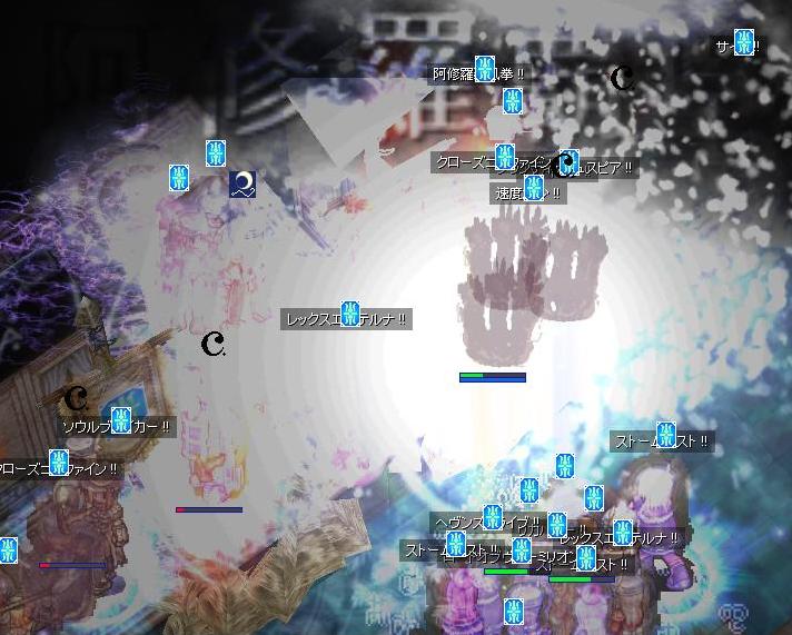 L4を破壊。しかしLは不人気なので攻め手がなかなか現れず撤退。すると時計さんが来て割ったようなので再び攻めることに。同じく攻め手にクレメンさんも。ここは道が狭くなかなか抜けられない。前衛につかまり蒸発。久遠さんが現れてgdりかけたので撤収。